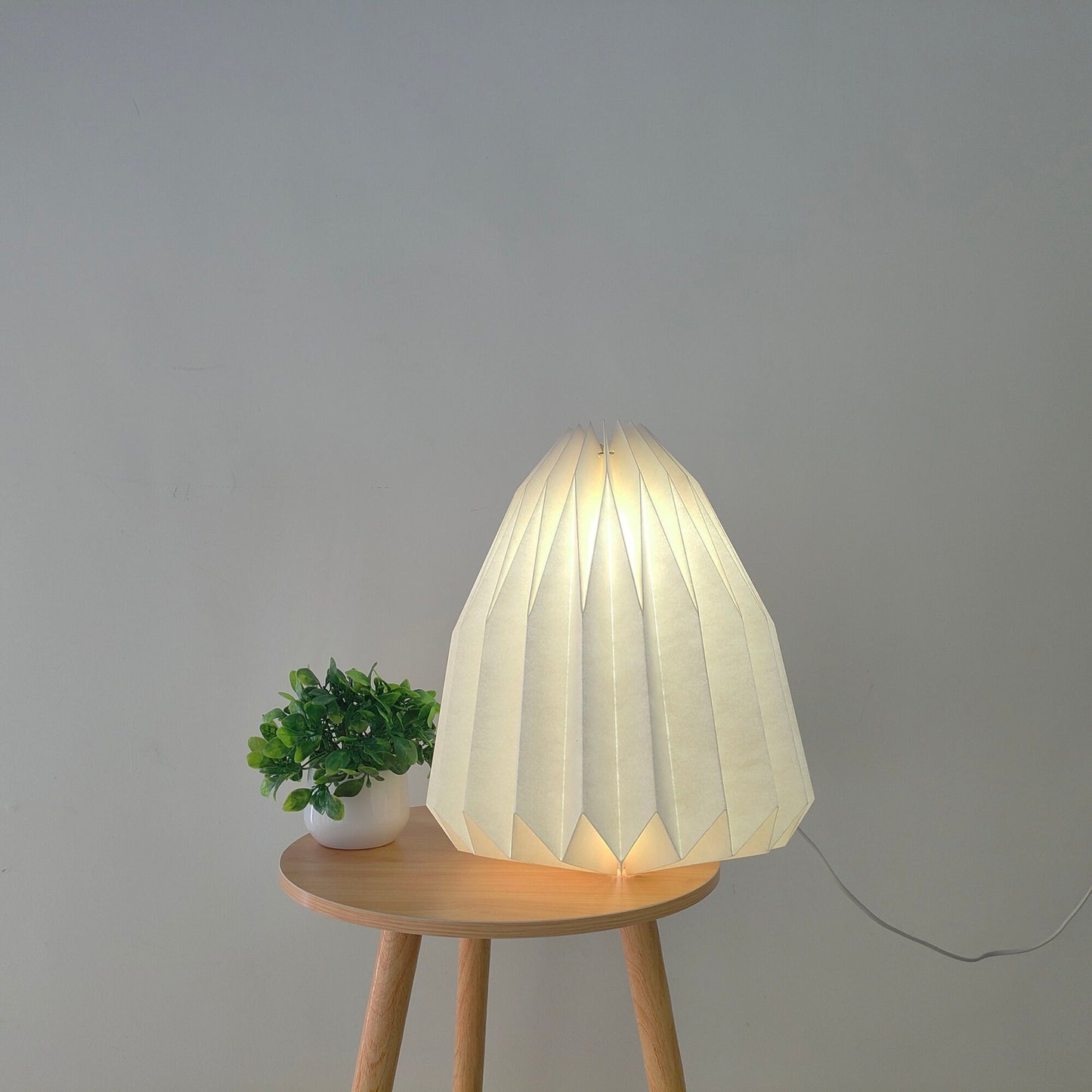 2. Красиво оформена и сгъната таванна лампа, ръчно изработена от висококачествена специална хартия. Горната и долната част на оригами лампата е фиксирана със сребърни метални пръстени (които могат да се отварят и затварят) за простота и издръжливост.