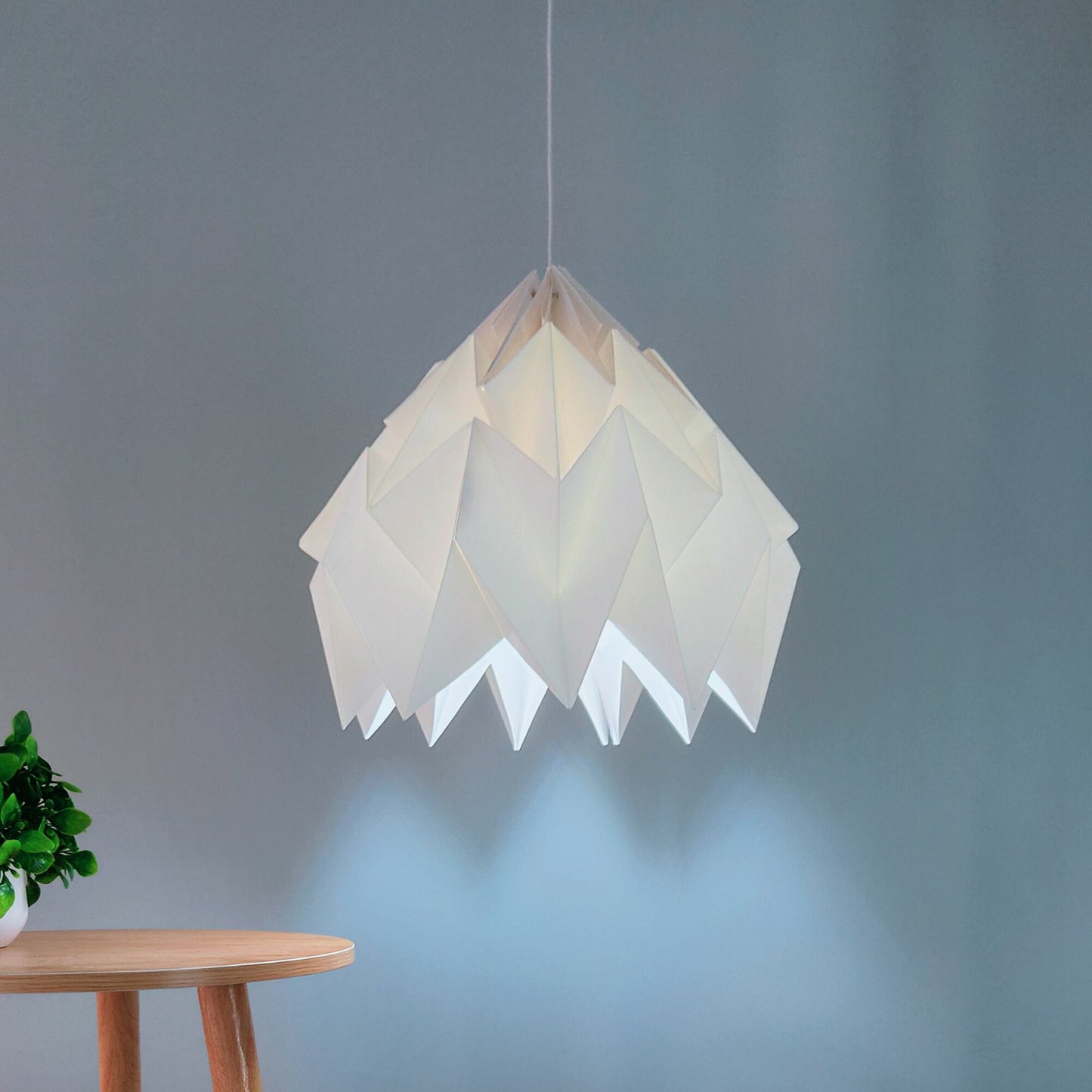 This origami paper lamp refers to the nordic minimalist and the tradition of Japanese origami art.With clear structures and patterns, very pretty as ceiling light close to or on the ceiling.
